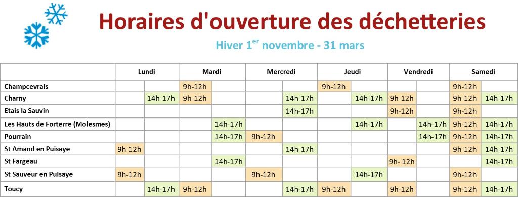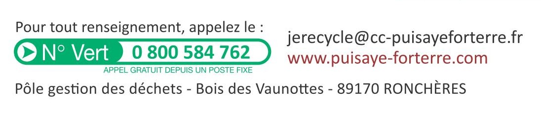 La gestion des déchets ménagers est un sujet important d'un point de vue environnemental et de santé publique. La commune d'Arquian fait partie de la Communauté de communes de Puisaye-Forterre qui exerce la compétence de la collecte et traitement des déchets. Le tri des déchetsSur tout le territoire intercommunal, les habitants trient leurs déchets en fonction de leur nature : → les emballages recyclables (bouteilles en plastique, emballages en carton, briques alimentaires, boîtes de conserve,etc.) sont à mettre dans les sacs jaunes mis à disposition en mairie Les emballages recyclables (sacs jaunes) et les ordures ménagères (bacs noirs) sont collectés alternativement un vendredi sur deux (poubelles à sortir la veille au soir). Les biodéchets (bacs verts ou bioseaux) sont collectés chaque semaine également le vendredi. Les déchetteriesLa Puisaye-Forterre compte neuf déchetteries accessible par l'ensemble des habitants du territoire. La plus proche d'Arquian est celle de Saint-Amand-en-Puisaye. Vous pouvez y déposer :